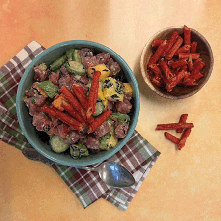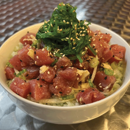 Entire menu is 100% Gluten Free. Poke served on a bed or either Green Bamboo Rice or Forbidden Rice. All bowls are served with Toasted Sesame Seeds, Green Onions & Himalayan Sea Salt.