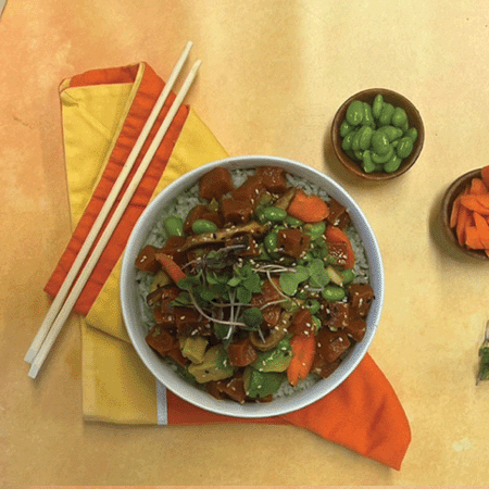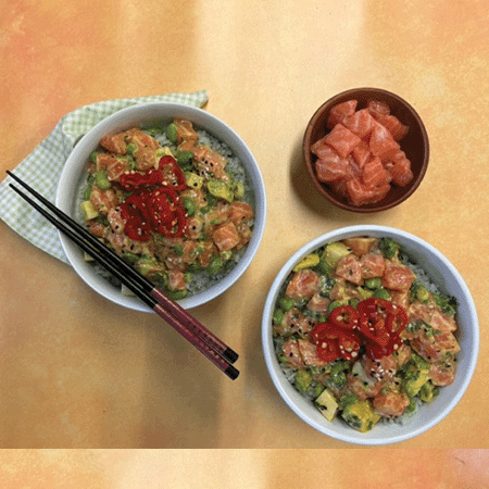 Poke is a Hawaiian fusion-style of raw fish and rice bowls. Choose Tuna, Salmon, (cooked) Shrimp, and vegan Impossible Tuna.